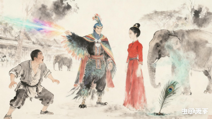 “好个地老鼠。”姑娘轻笑,瞳孔变成碧色,“我本是勐泐王公主,百年前被妖道封入孔雀躯壳。”